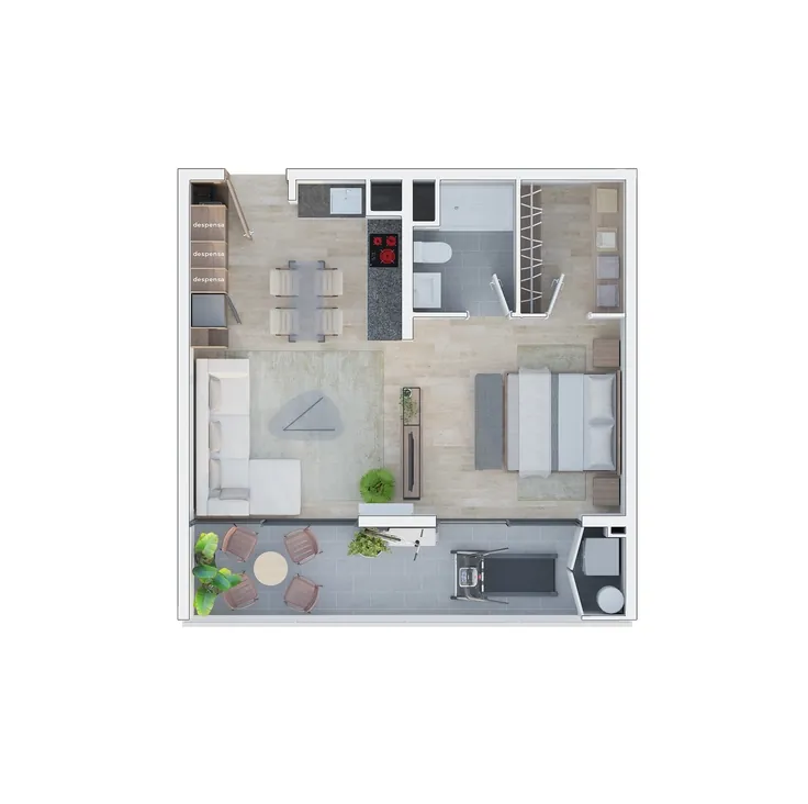 de 1 dormitorio de 35 m² • 43 m² • 49 m²